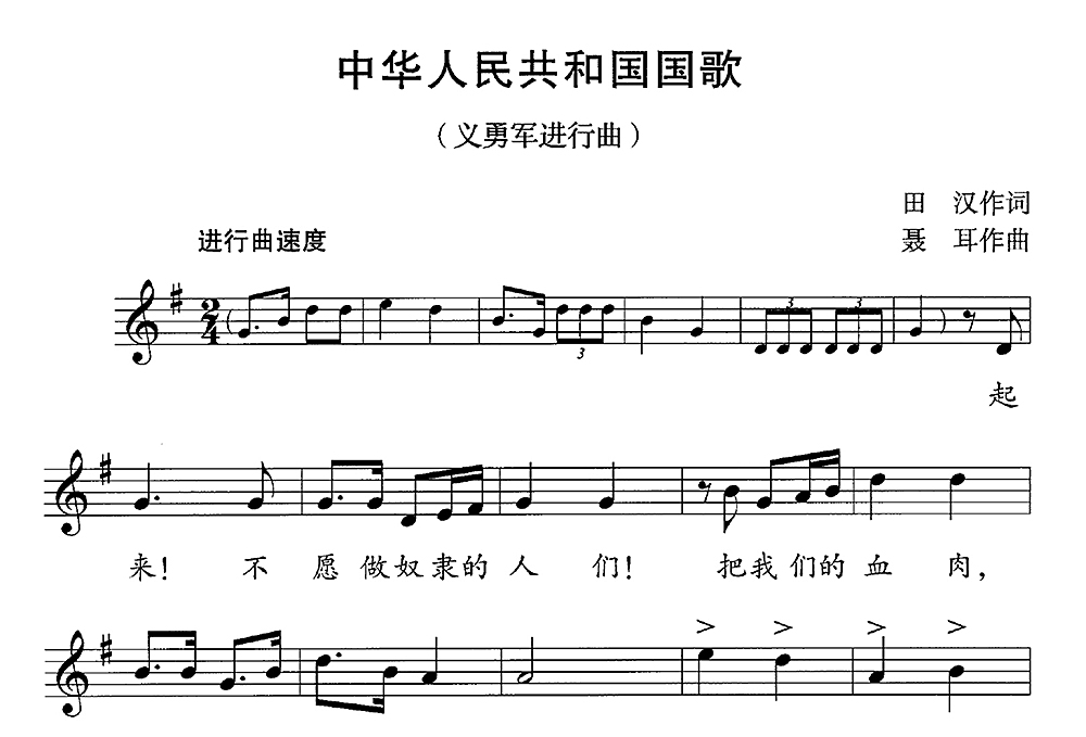• 简谱(国歌法附件)